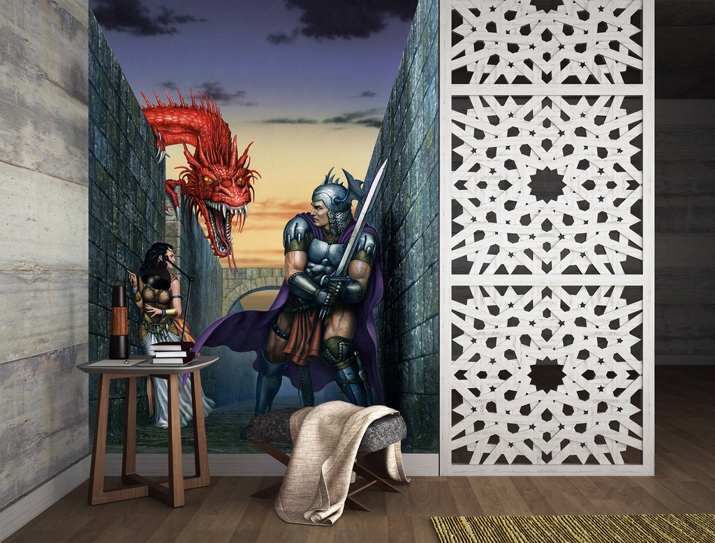 3D Red Dragon Soldier Woman 7101 Ciruelo Wall Mural Wall Murals Sinsin
