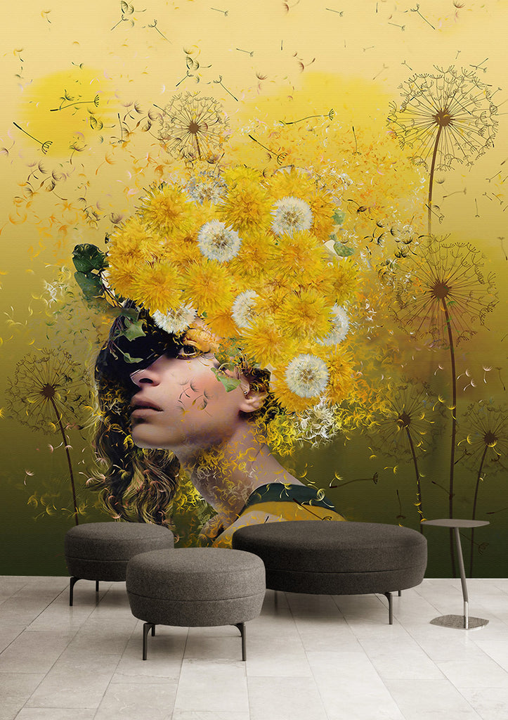 3D Woman Dandelion WG024 Wall Murals Zoe