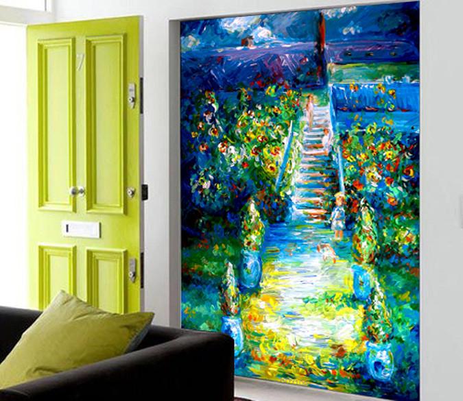 Align panel 2 to panel 1. Simply match the pattern of the mural (with 2cm overlap).No need to cut. Repeat for additional panels. Trim any ceiling and baseboard overage, lt's better to wipe the mural's surface with a wet cloth after the installation. Because it will make more sticky.