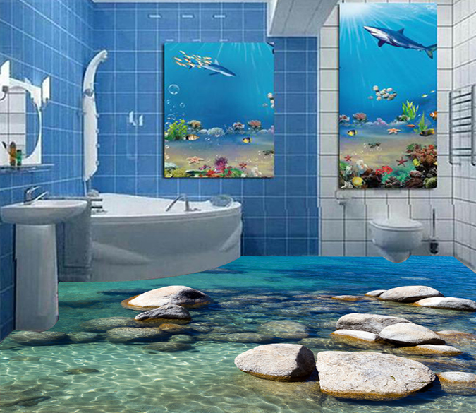 3D Seaside Stone 016 Floor Mural Self-Adhesive Sticker Bathroom Non-slip Waterproof Flooring Murals