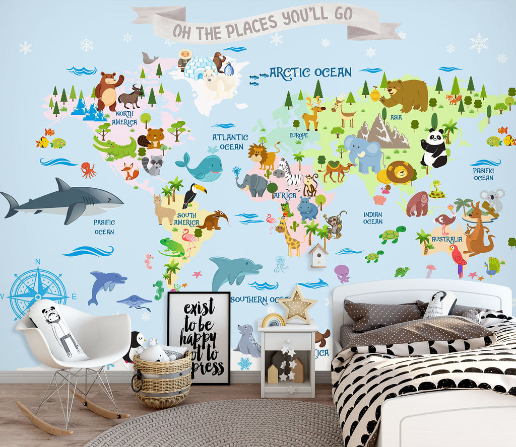 3D Animal Family 2152 World Map Wall Murals