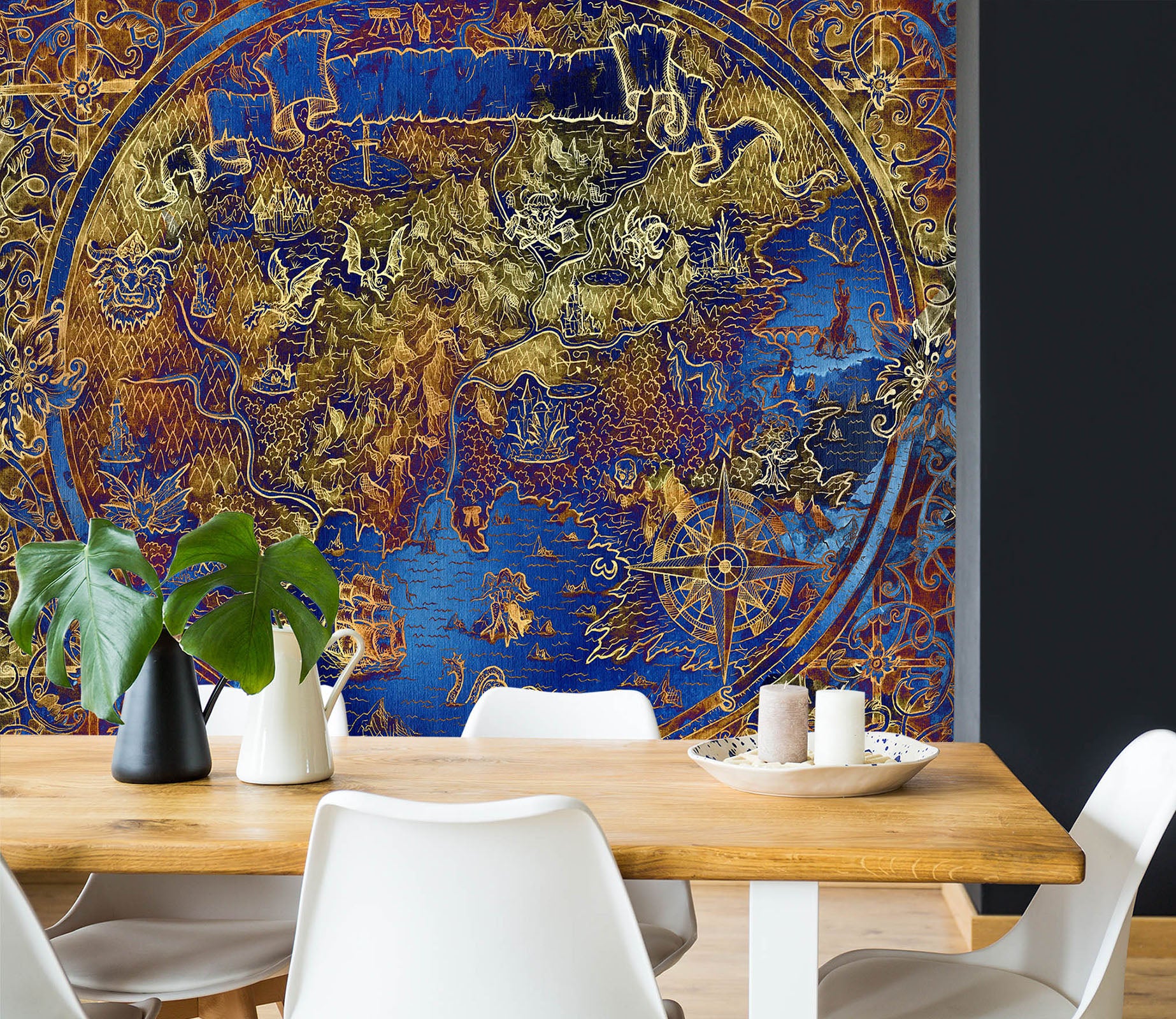 3D Gold Pattern 2151 World Map Wall Murals Dai