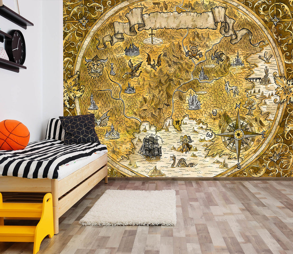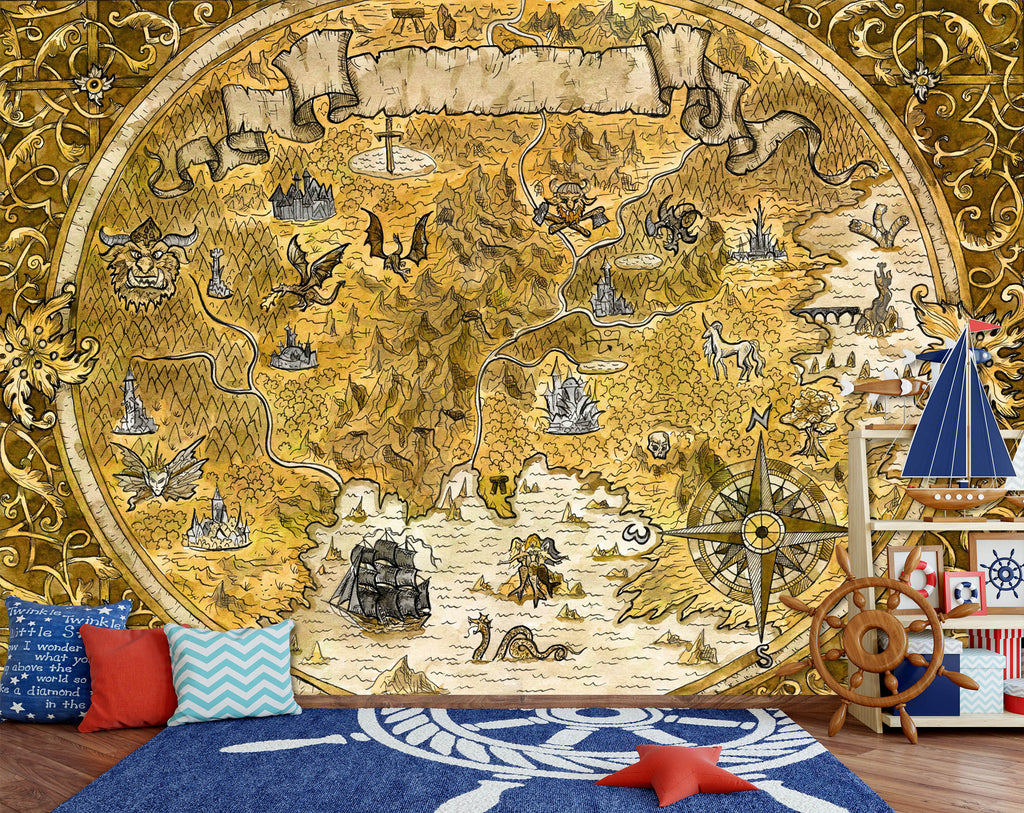 3D Yellow Valley 2150 World Map Wall Murals Dai