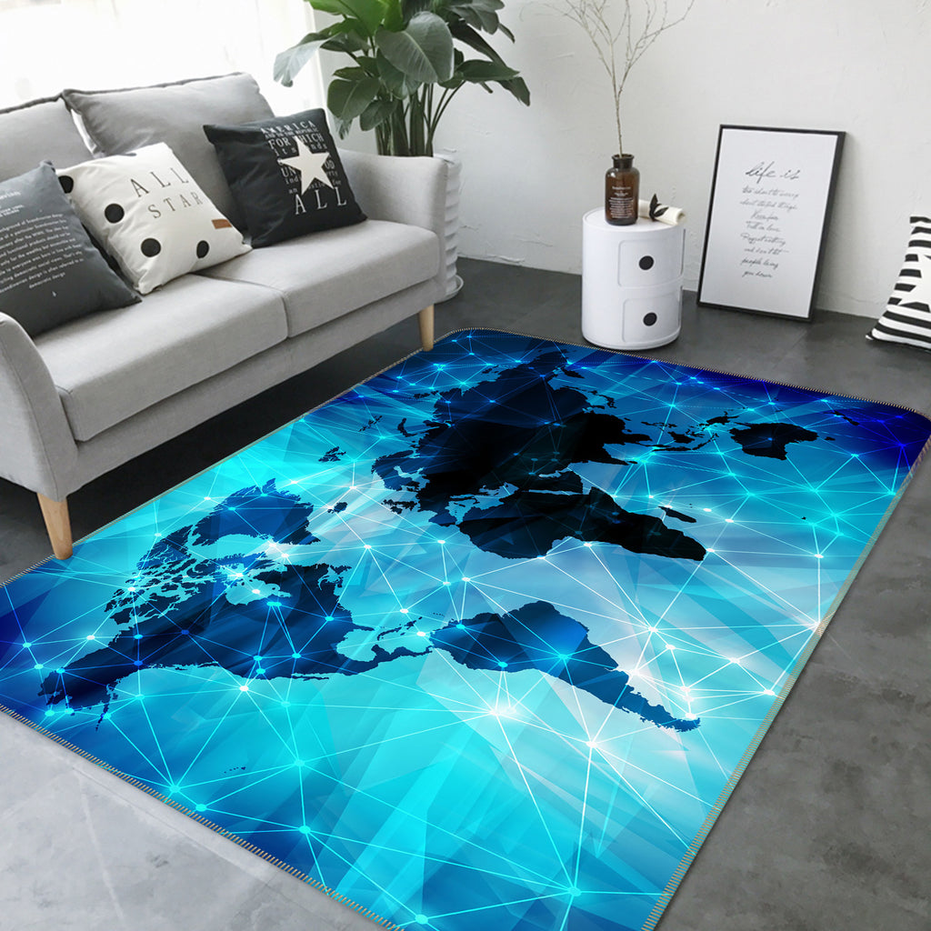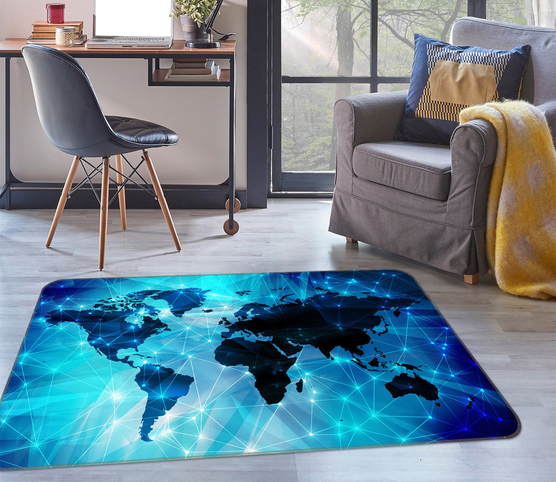3D Blue World 308 World Map Non Slip Rug Mat Dai