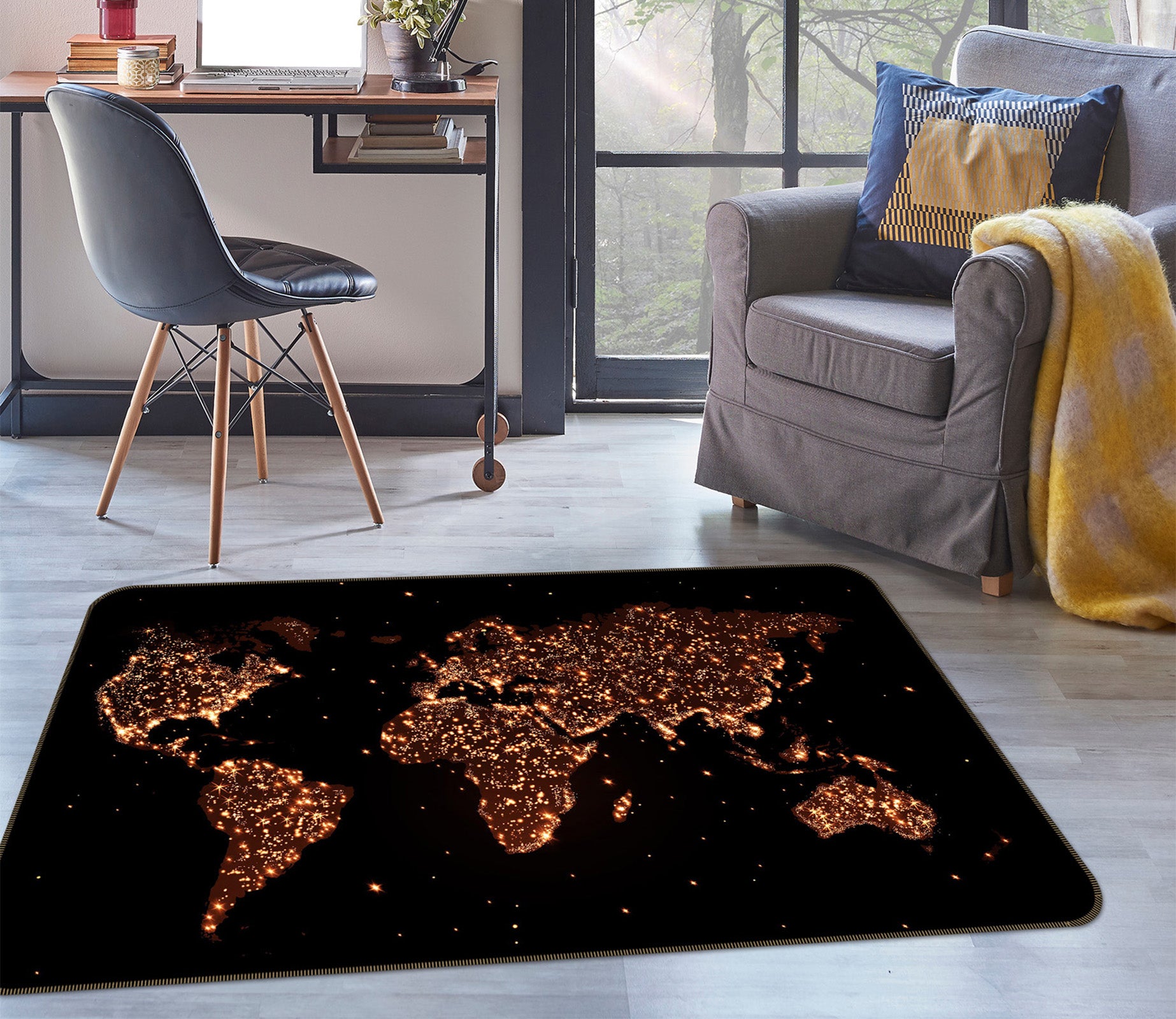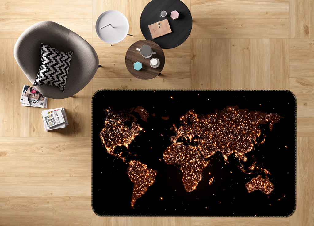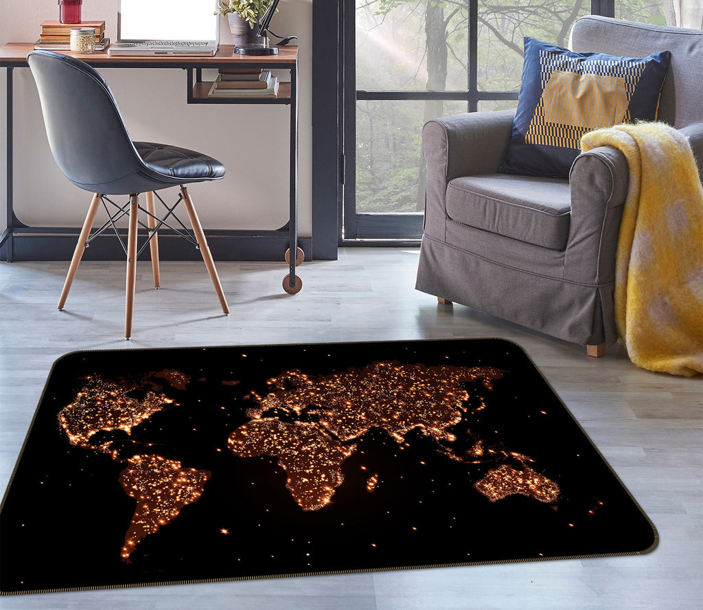 3D Golden Land 244 World Map Non Slip Rug Mat
