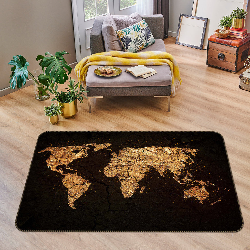 3D Golden Territory 249 World Map Non Slip Rug Mat Dai