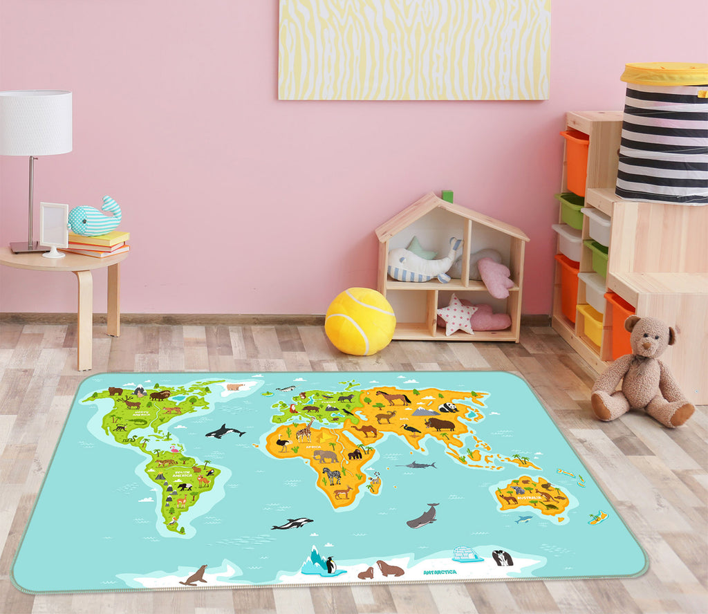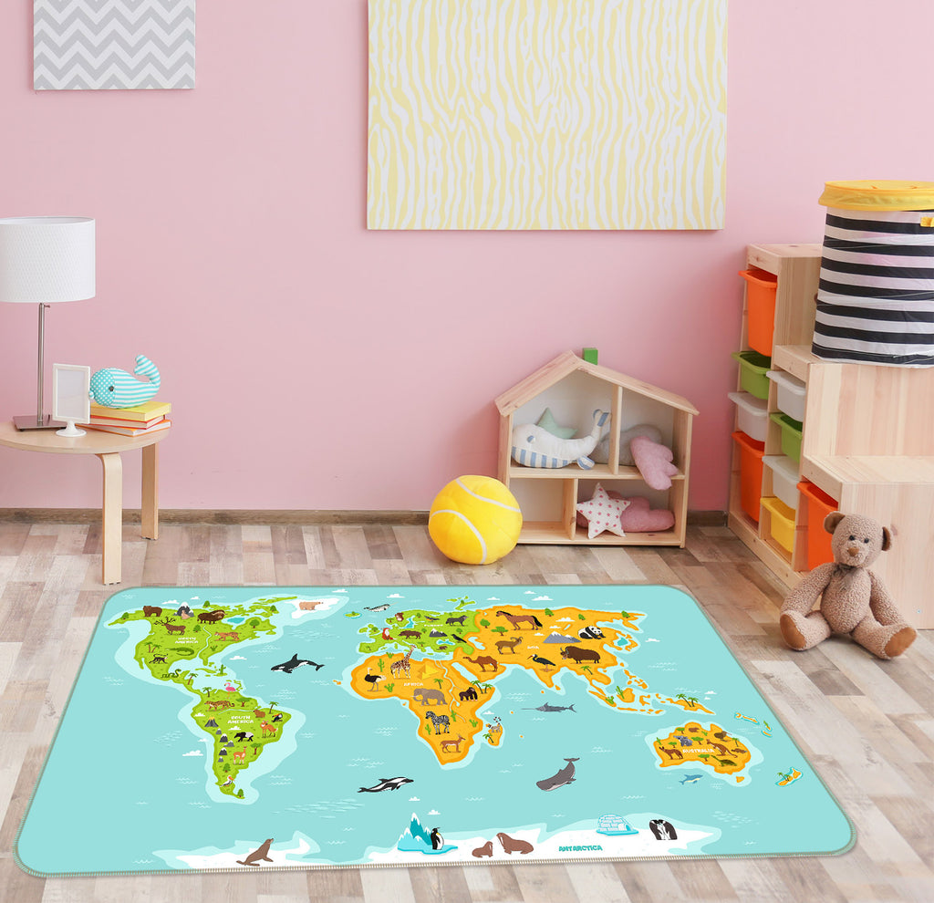 3D Sea Island 322 World Map Non Slip Rug Mat Dai