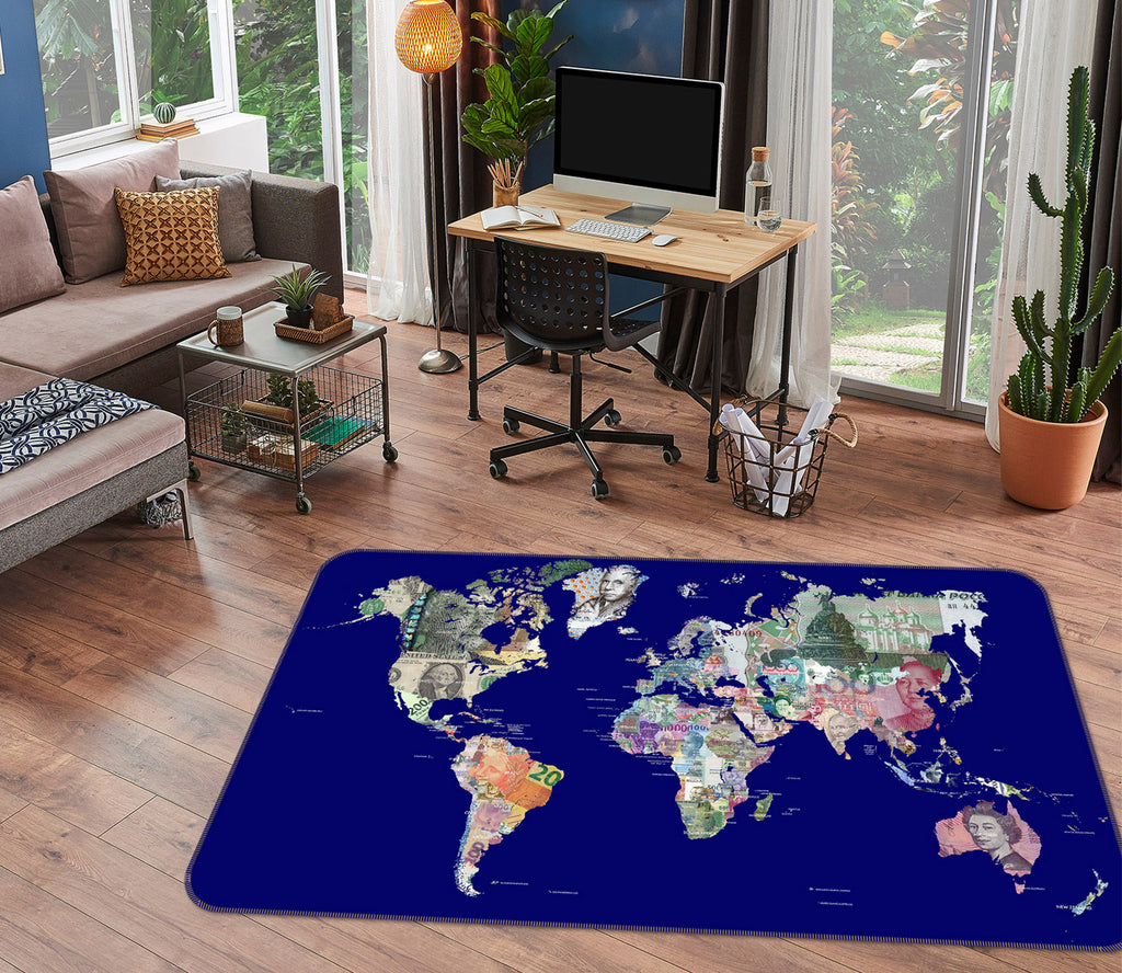 3D Sky Stone 245 World Map Non Slip Rug Mat
