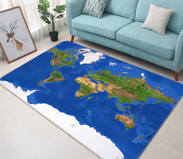 3D Blue World 251 World Map Non Slip Rug Mat
