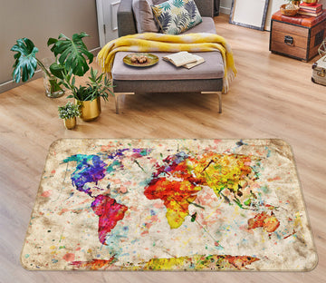 3D Color Splash 243 World Map Non Slip Rug Mat