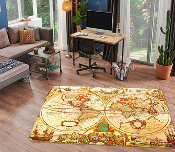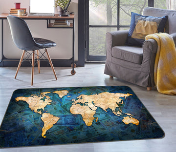 3D Golden Territory 249 World Map Non Slip Rug Mat