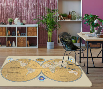 3D Golden Land 239 World Map Non Slip Rug Mat