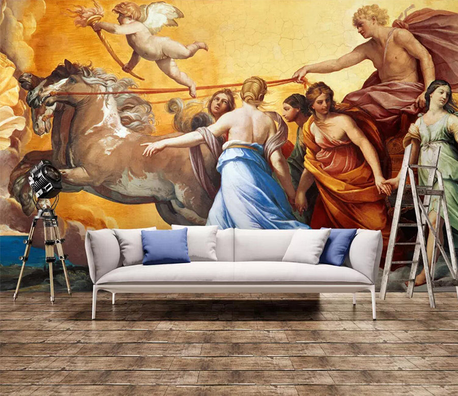 Make sure the wall surface is flat, clean and smooth. A clean and dry wall will help the adhesive from your wall mural to keep its stickiness. Put all panels on the ground, check the order. Measure and write down the dimensions of each panel. Mark vertical guidelines according to the panel's dimensions. Leave 2-3cm overlap between panels.