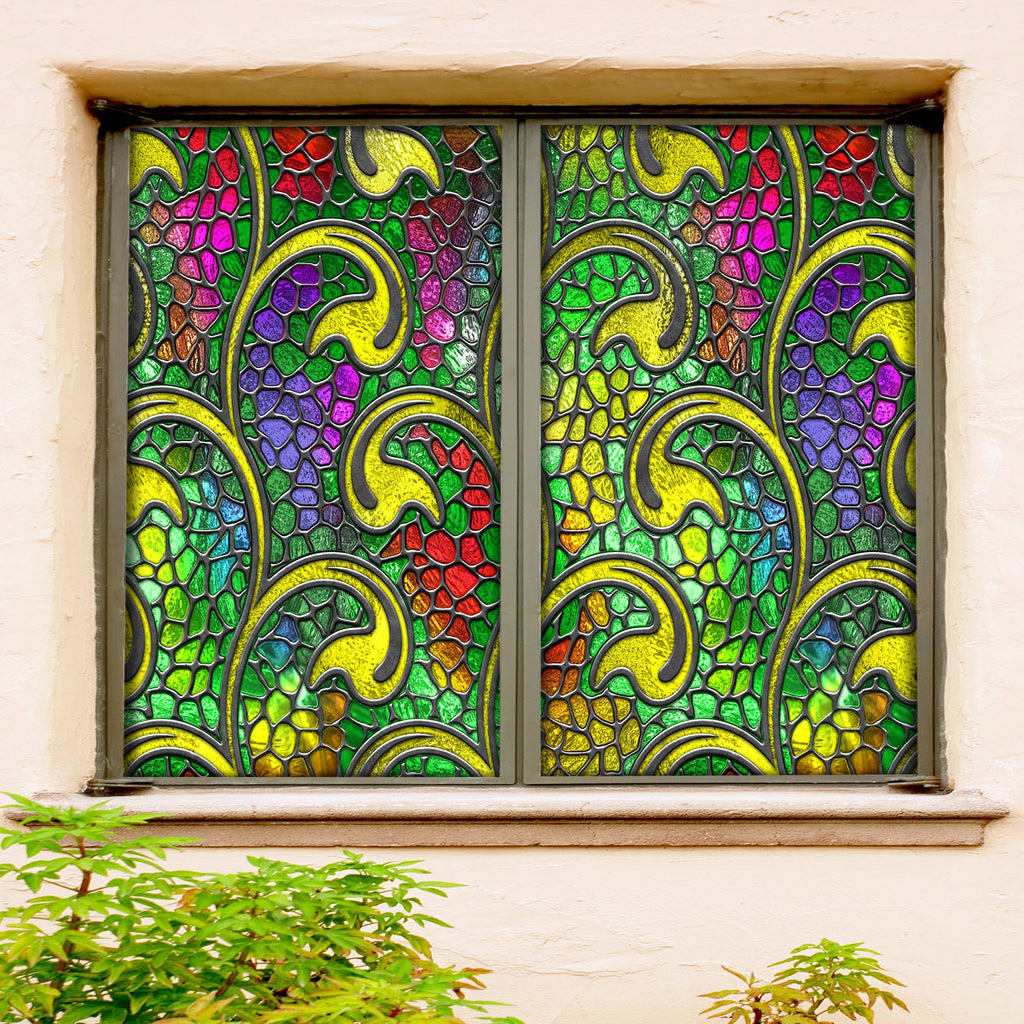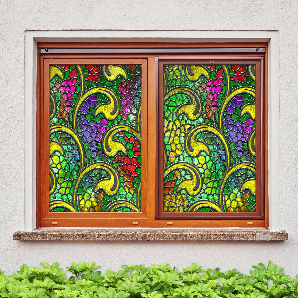 3D Green Leaf 124 Window Film Print Sticker Cling Stained Glass UV Block