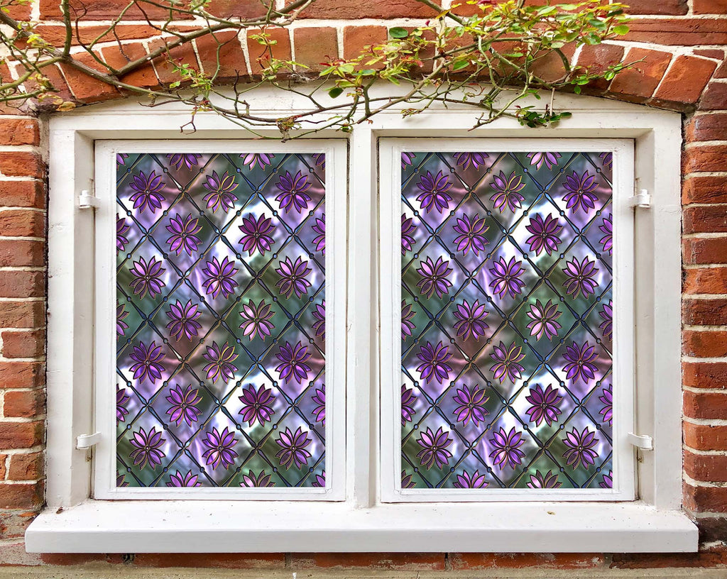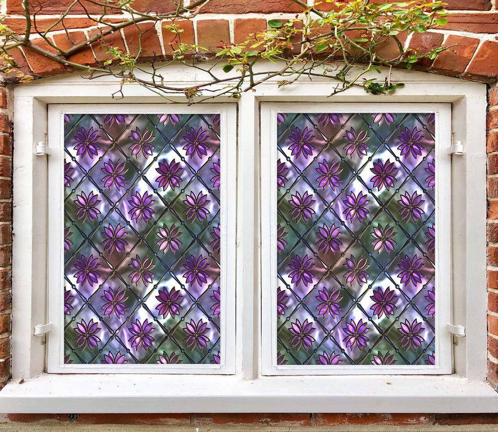 3D Purple Glass Flower 133 Window Film Print Sticker Cling Stained Glass UV Block