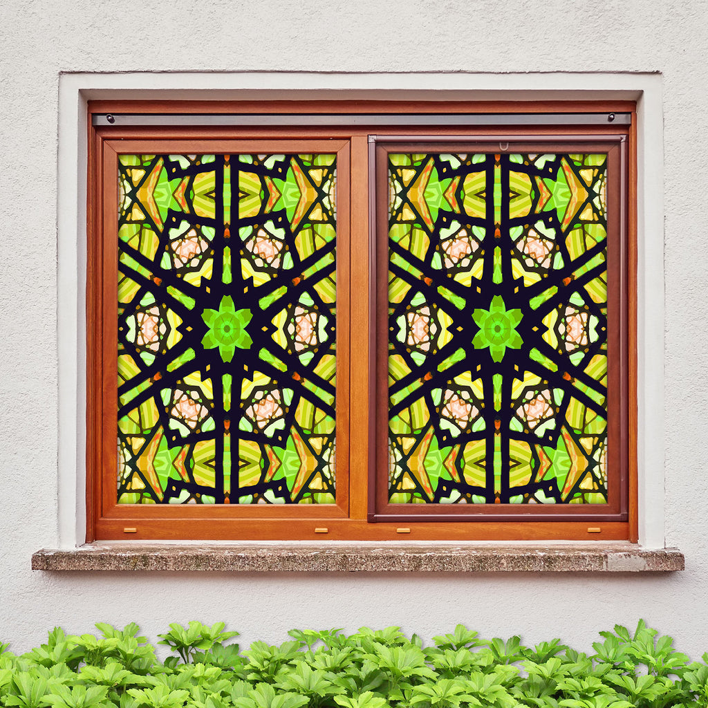 3D Green Flower 028 Window Film Print Sticker Cling Stained Glass UV Block