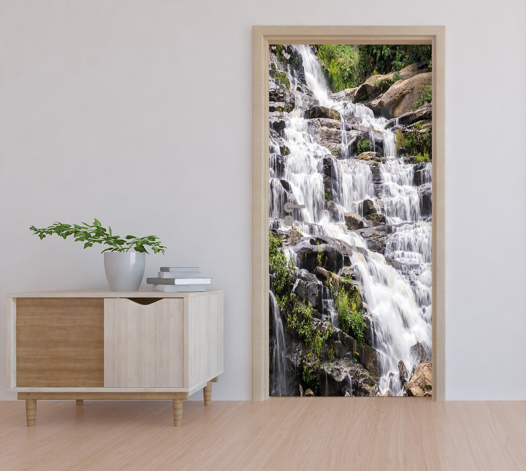Align panel 2 to panel 1. Simply match the pattern of the mural (with 2cm overlap).No need to cut. Repeat for additional panels. Trim any ceiling and baseboard overage, lt's better to wipe the mural's surface with a wet cloth after the installation. Because it will make more sticky.
