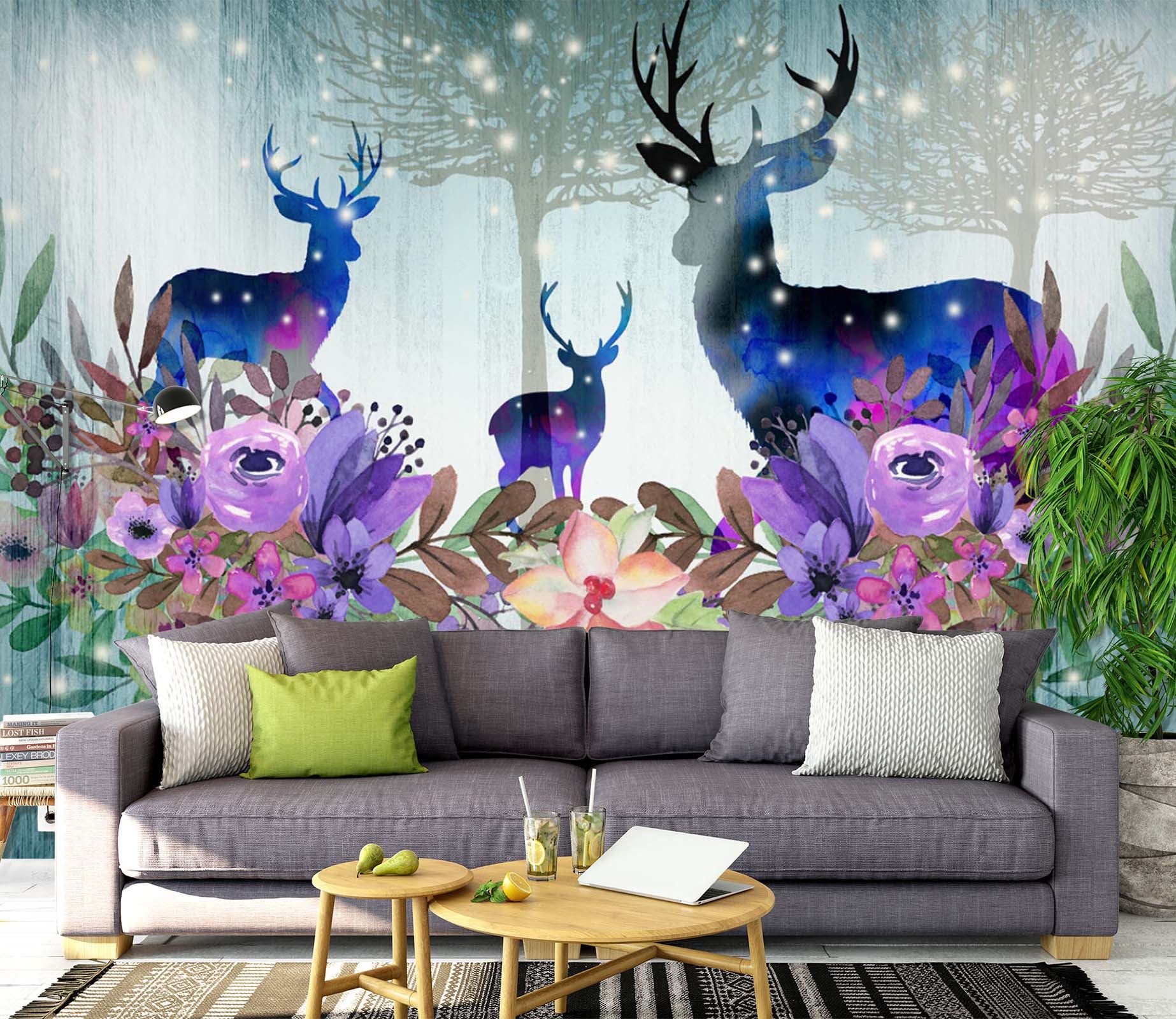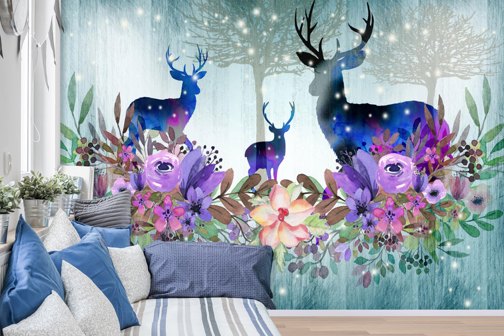 3D Flower Deer 1453 Wall Murals Dai