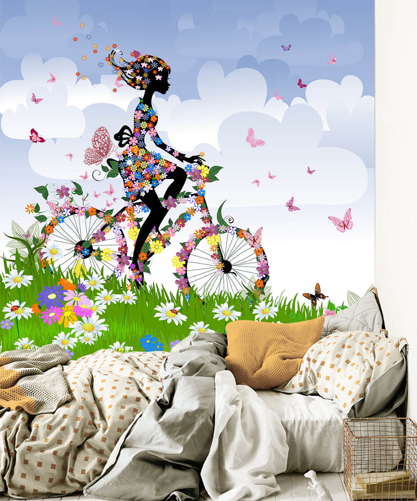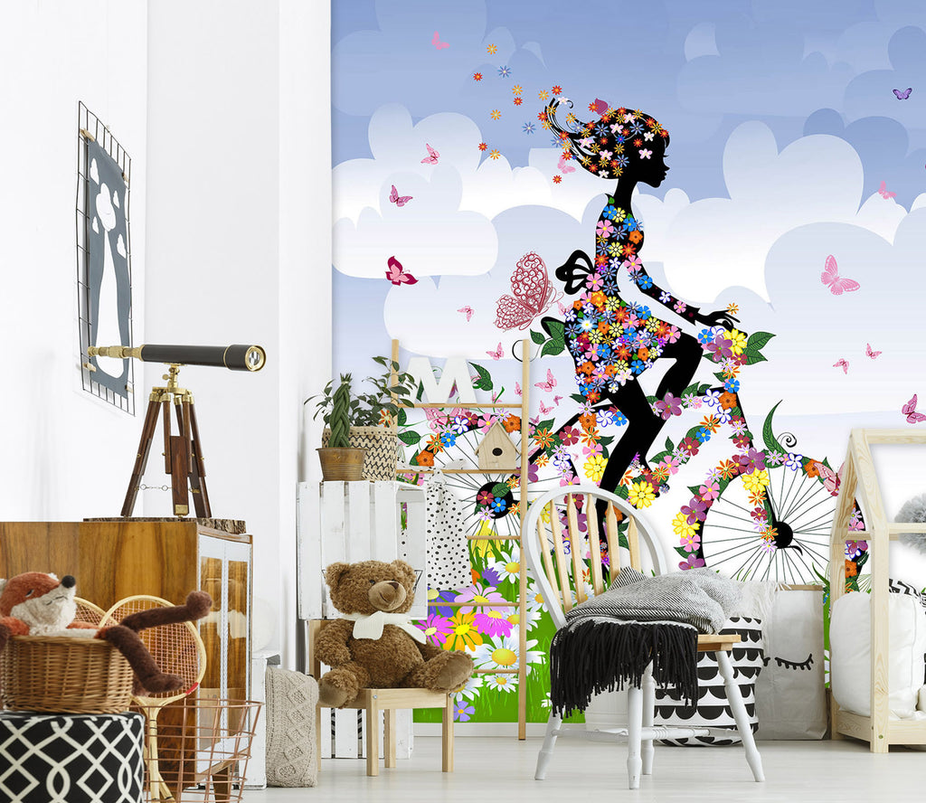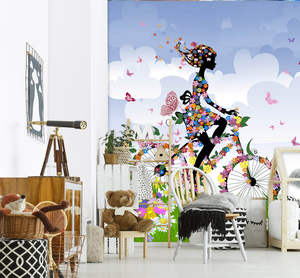 3D Flower Girl Bicycle 005 Wall Murals Zoe