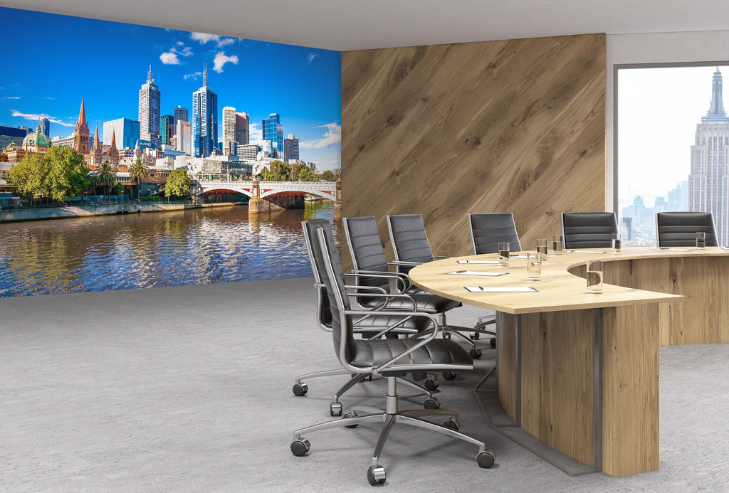 Make sure the wall surface is flat, clean and smooth. A clean and dry wall will help the adhesive from your wall mural to keep its stickiness. Put all panels on the ground, check the order. Measure and write down the dimensions of each panel. Mark vertical guidelines according to the panel's dimensions. Leave 2-3cm overlap between panels.