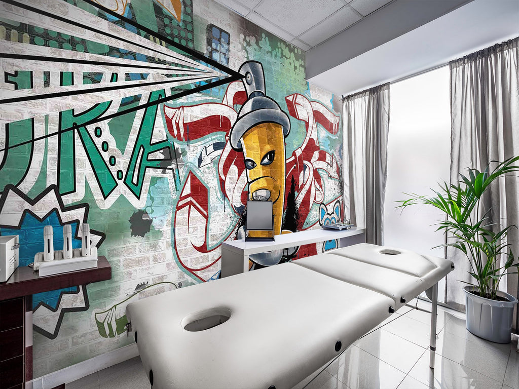 Make sure the wall surface is flat, clean and smooth. A clean and dry wall will help the adhesive from your wall mural to keep its stickiness. Put all panels on the ground, check the order. Measure and write down the dimensions of each panel. Mark vertical guidelines according to the panel's dimensions. Leave 2-3cm overlap between panels.