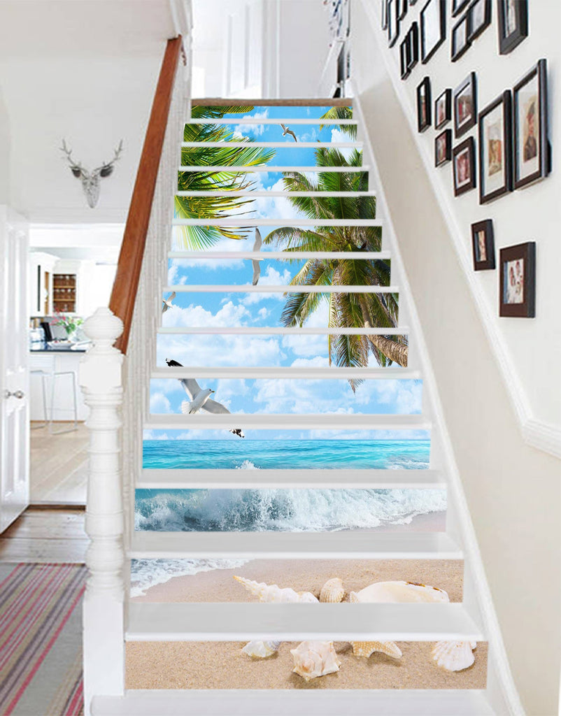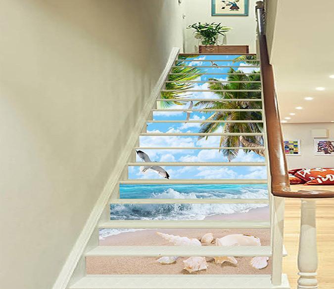 3D Sea Beach Seagulls 1518 Stair Risers