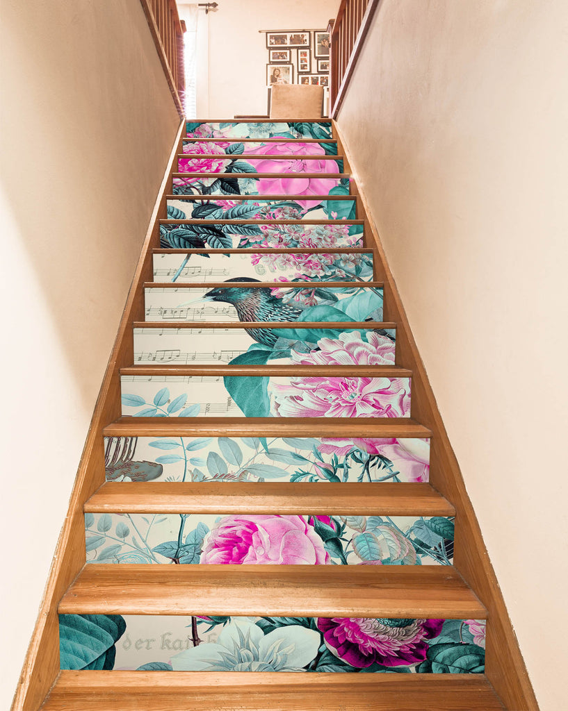 3D Bird Flower Pink 109176 Andrea Haase Stair Risers Sinsin