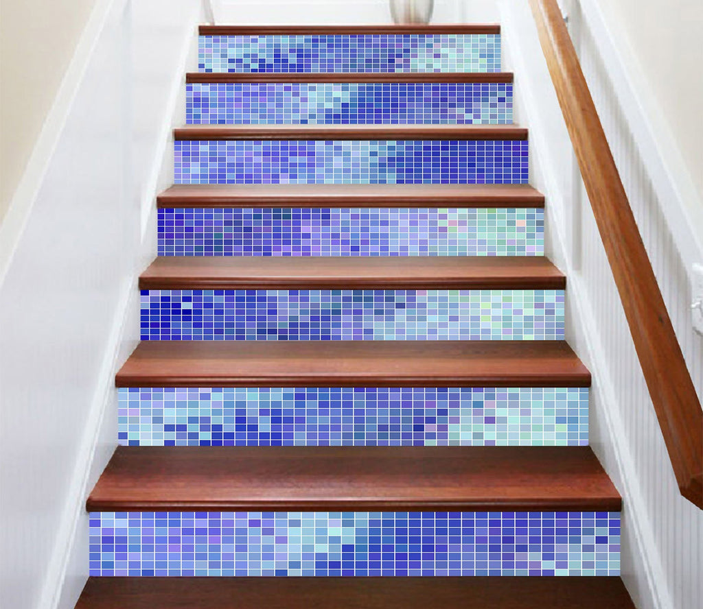 3D Bright Purple Mosaic 7144 Marble Tile Texture Stair Risers