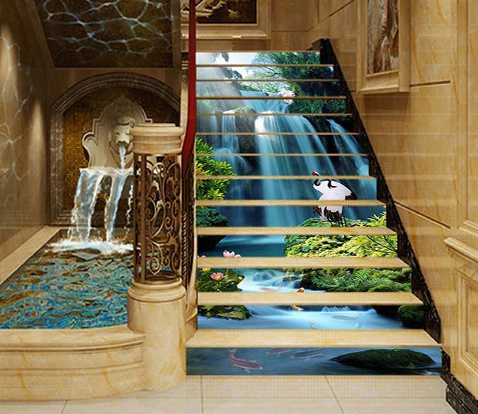 3D Charming Waterfall Cranes 1347 Stair Risers