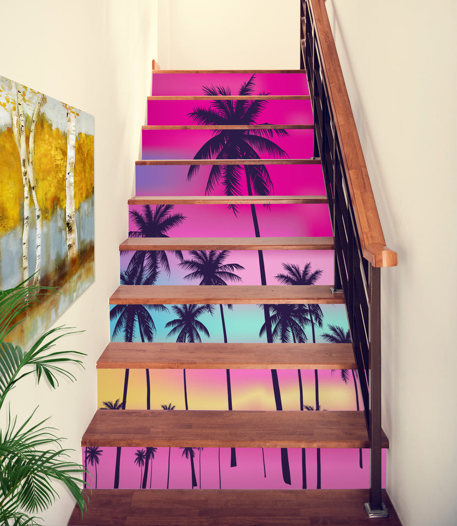 3D Coconut Trees Under Colorful Sky 285 Stair Risers Romy