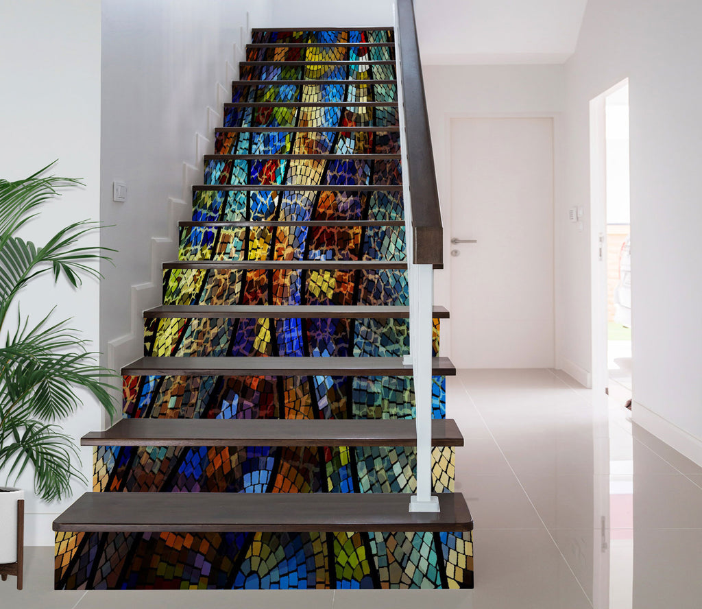 3D Colorful Fluorescent Square Arrangement 313 Stair Risers Romy