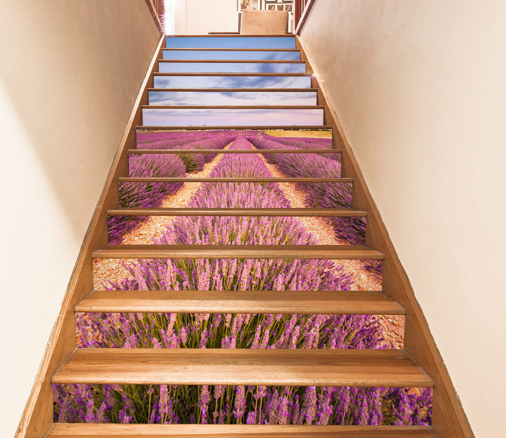 3D Dreamy Lavender Field 468 Stair Risers Romy