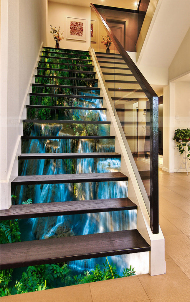 3D Forest Shiny Waterfalls 890 Stair Risers