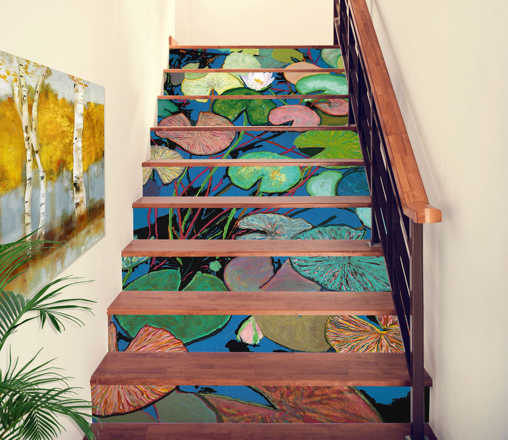 3D Green Brown Lotus Leaf Painting 90144 Allan P. Friedlander Stair Risers Sinsin