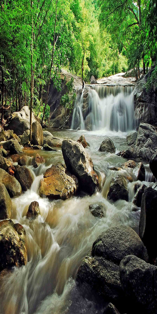 Apply the 1st panel. Leave 1-2cm overage on top. Bottom and left hand side. Smooth wrinkles and remove bubbles. Align panel 2 to panel 1. Simply match the pattern of the mural (with 2-3cm overlap)Peel away the excess piece.