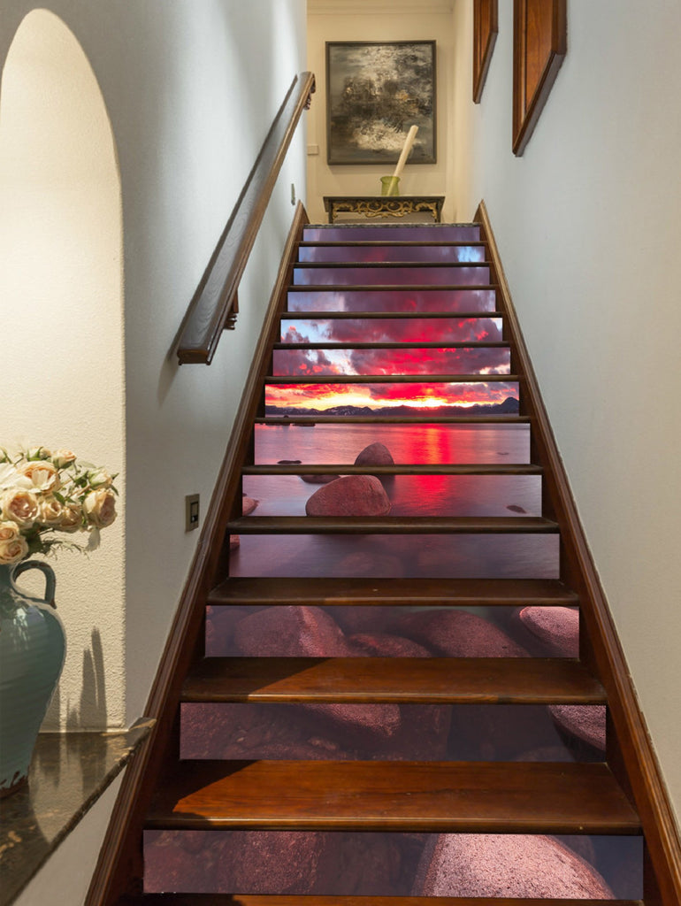 3D Lake Sunset Glow 709 Stair Risers