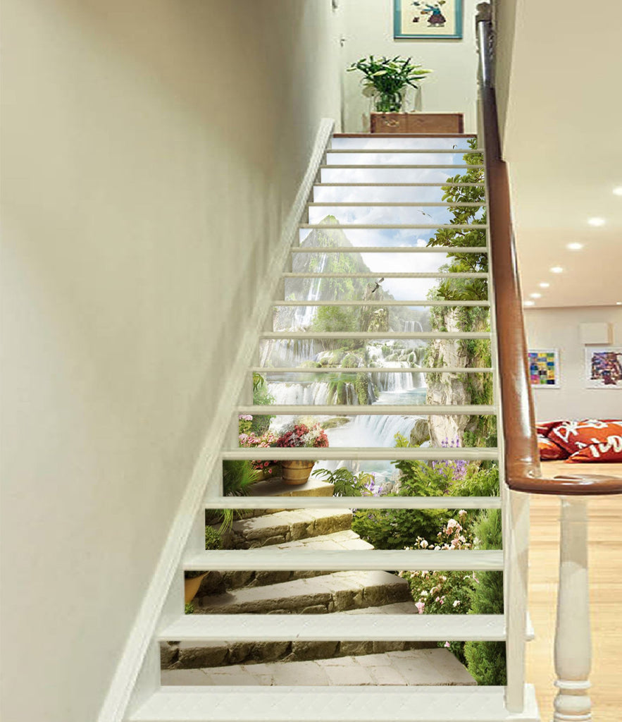 3D Mountain Waterfalls 1483 Stair Risers