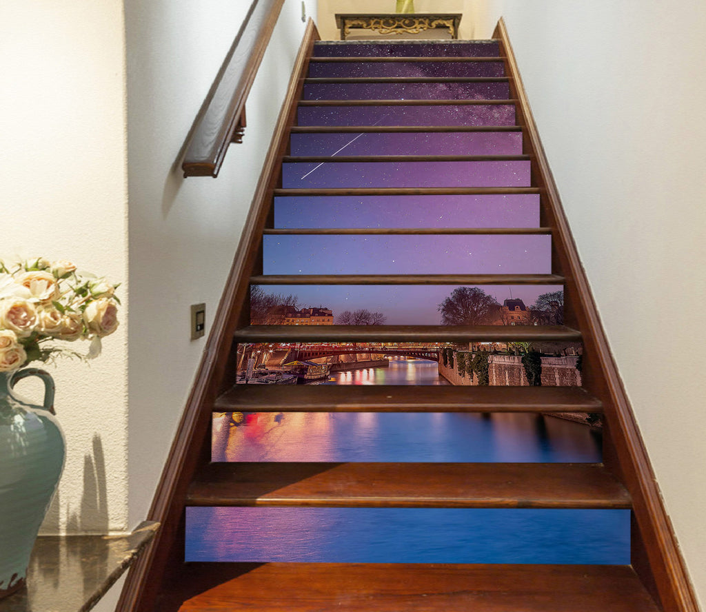 3D Night Riverside 9962 Assaf Frank Stair Risers Sinsin