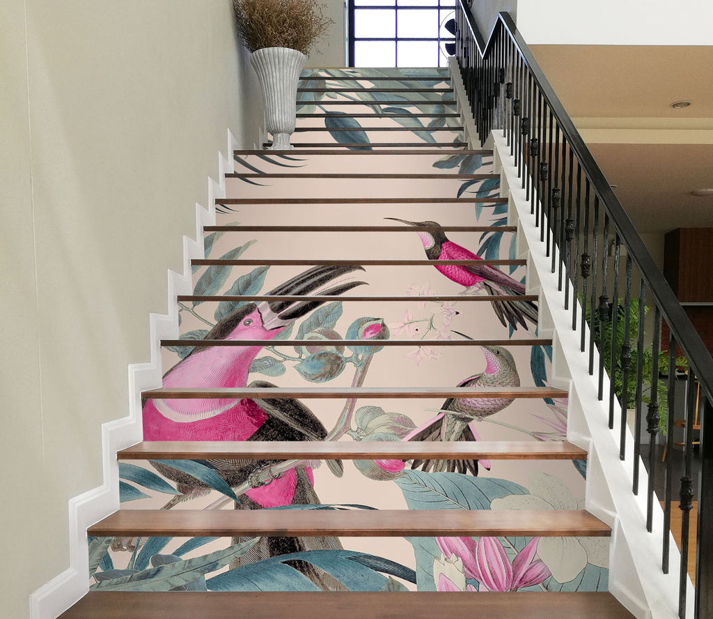 3D Pink Bird Stork Leaves 109186 Andrea Haase Stair Risers Sinsin