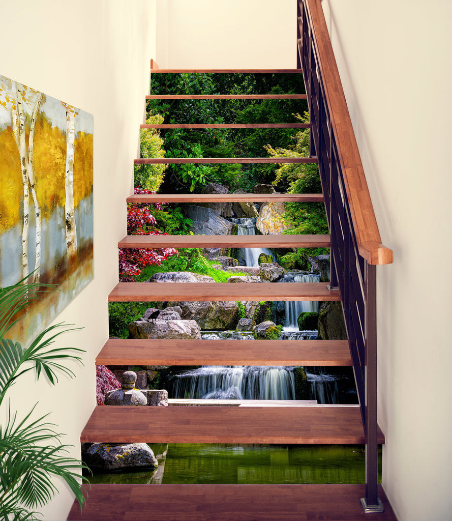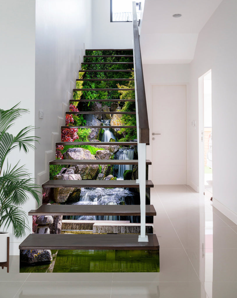 3D Plants And Meandering Water 375 Stair Risers Romy