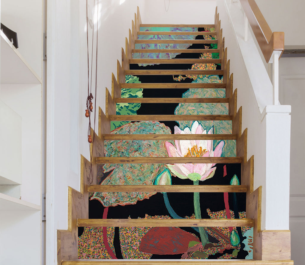 3D Pond Lotus Leaf Pink Flower 90133 Allan P. Friedlander Stair Risers Sinsin