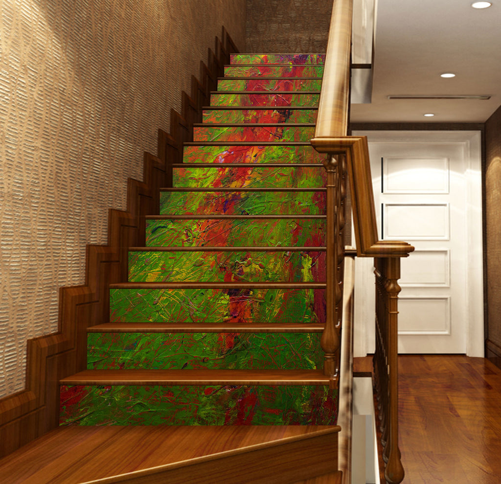 3D Red Green Oil Painting Pattern 90174 Allan P. Friedlander Stair Risers Sinsin