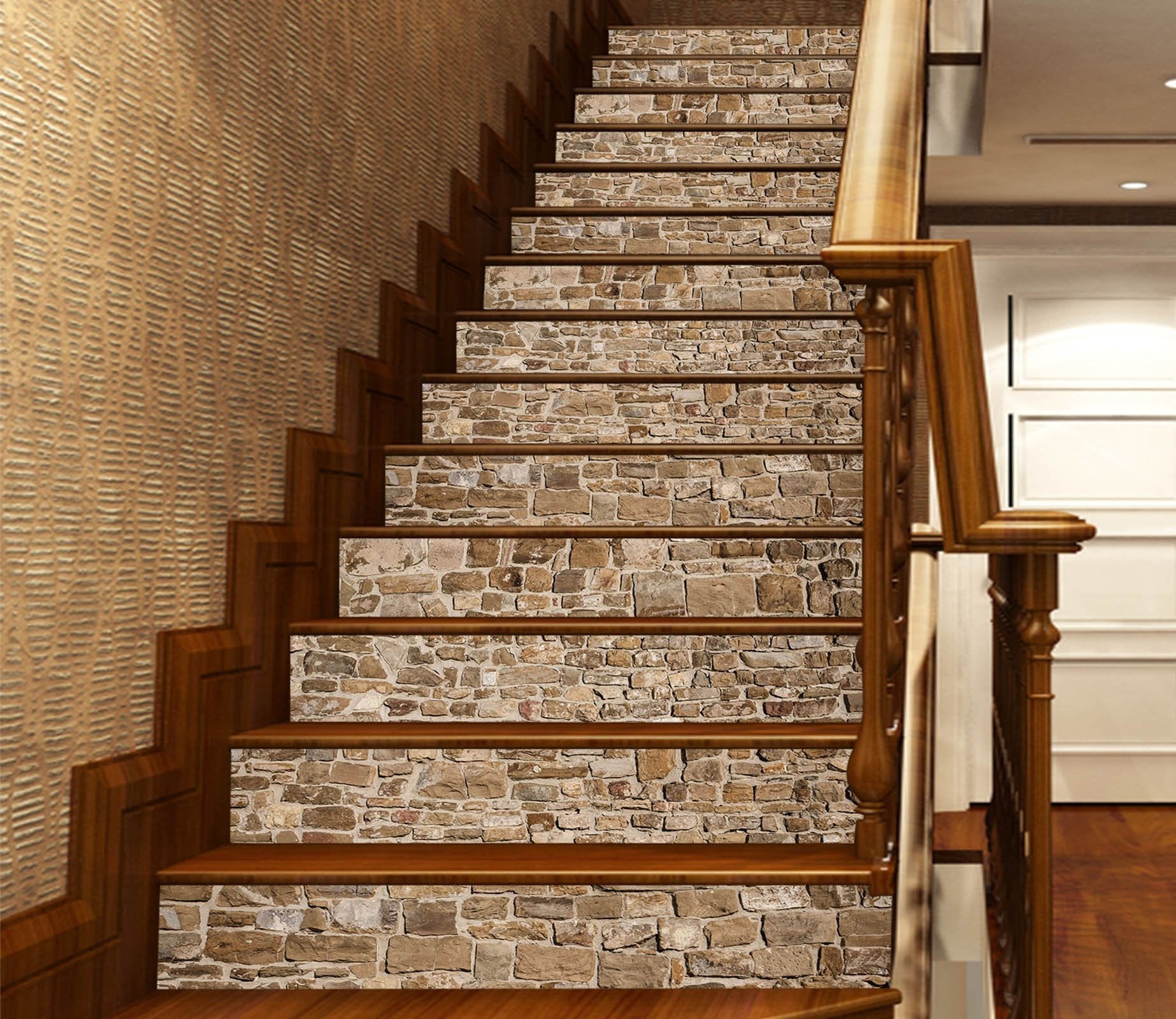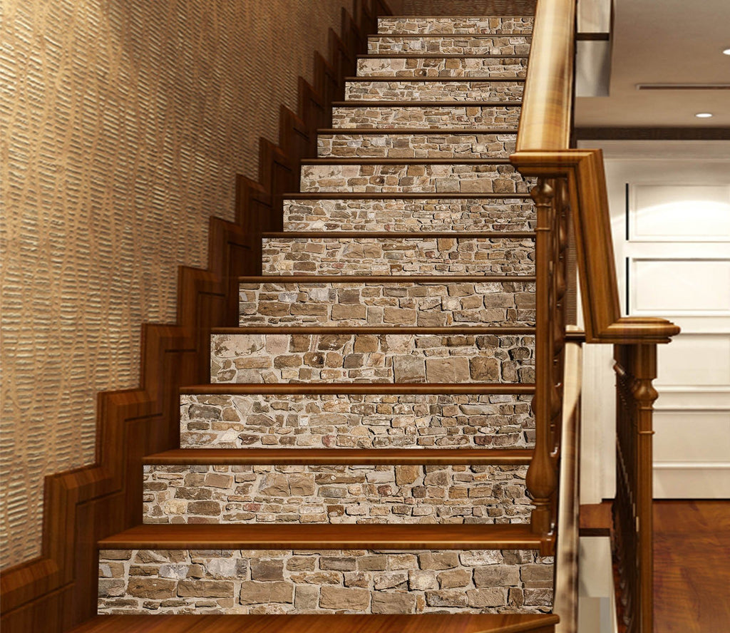 3D Vintage Brick 669 Marble Tile Texture Stair Risers