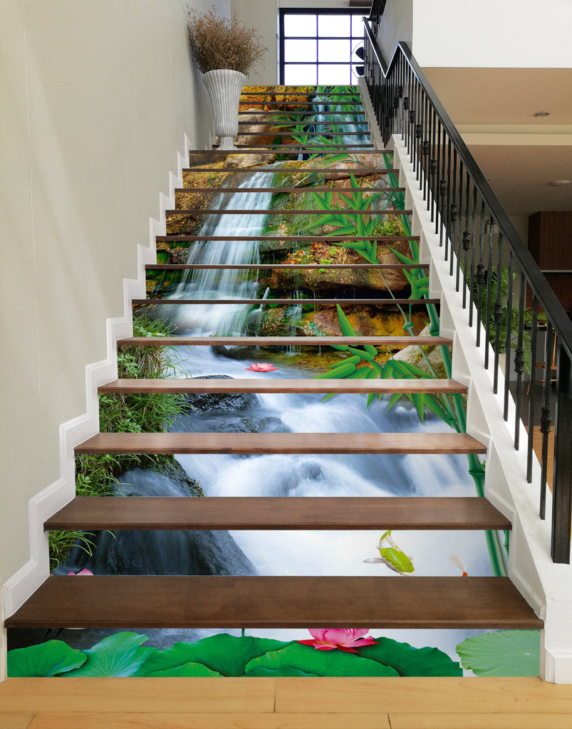 3D Waterfall And Lotus 053 Stair Risers Romy