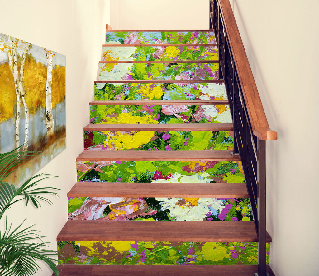 3D White Flower Oil Painting Pattern 9073 Allan P. Friedlander Stair Risers Sinsin