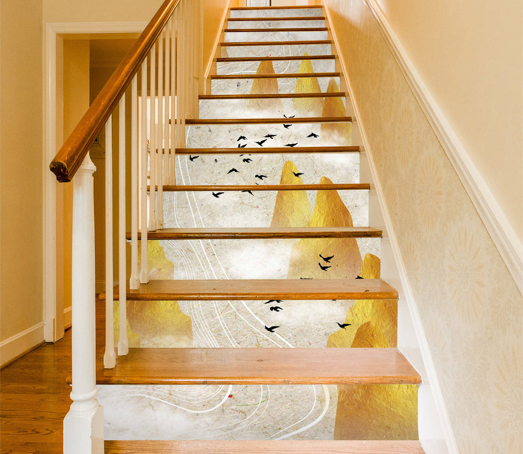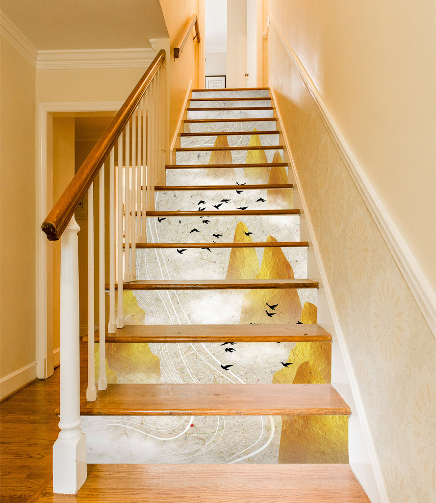 3D Yellow Sand Flying Bird 612 Stair Risers