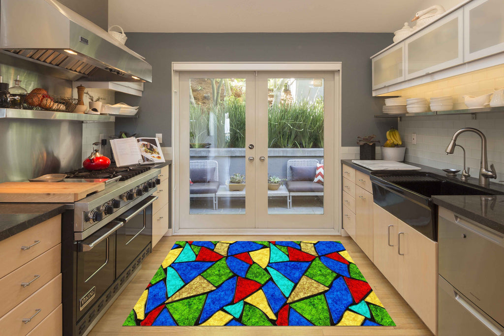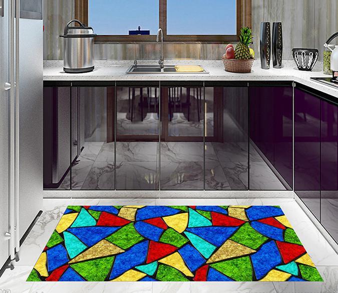 3D Color Blocks Pattern Kitchen Mat Floor Mural