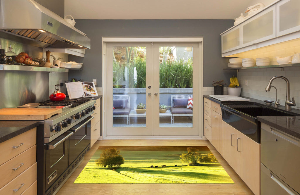 3D Green Ranch Horses 511 Kitchen Mat Floor Mural