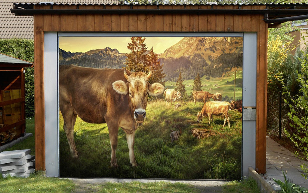3D Mountain Grassland Animals 253 Garage Door Mural