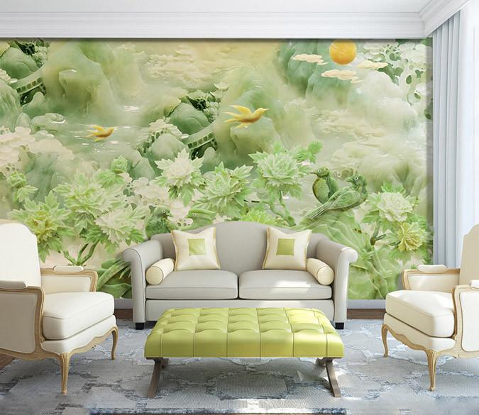 3D Natural jade green hill sun